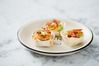 3. 만두피를 머핀 틀에서 빼내어 식힌 다음 어린잎 채소와 사워크림 소스를 넣는다. (Tip사워크림이 없다면 플레인 요거트나 마요네즈 계열의 드레싱을 이용한다.) |