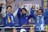 이인영 더불어민주당 원내대표가 7일 오후 서울 강남구 도곡시장 앞에서 열린 김성곤 강남갑 후보 강남병 김한규 후보 합동유세 현장을 찾아 지지를 호소하고 있다.