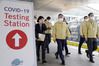 문재인 대통령이 7일 인천국제공항 제1터미널에 마련된 코로나19 개방형 선별진료소(오픈 워크 스루·Open Walk Thru)를 살펴본 뒤 이동하고 있다. /제공=청와대 |