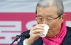 미래통합당 김종인 총괄선거대책위원장이 지난 7일 강원 춘천시 미래통합당 강원도당에서 열린 미래통합당·미래한국당 공동 강원권역 선대위 회의에서 물을 마시고 있다. [연합] |