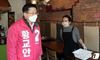 황교안 미래통합당 종로구 후보가 8일 서울 종로구 부암동에서 거리유세를 마치고 인근 식당 직원과 인사를 하며 지지를 호소하고 있다. |