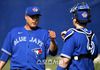 토론토 블루제이스 류현진이 17일(한국시간) 플로리다 더니든 바비 매틱 트레이닝 센터에서 열린 스프링캠프에 참가해 불펜 피칭 후 포수 대니 존슨과 하이파이브를 하고 있다. 2020. 2.17.최승섭기자 |