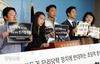 2019년 12월 ‘국회의 기득권 당리당략 정치에 반대하는 초당적 청년정치인’ 참가자들이 국회 기자회견장에서 선거법 개정안 즉각 통과를 요구하고 있다. |경향신문 자료사진 |