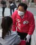 4·15총선 경기 남양주병에 출마한 미래통합당 주광덕 후보가 9일 오후 남양주시 금곡동에서 한 어린이와 눈인사를 나누고 있다. /박상훈 기자 |