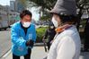 무소속 서울 동대문을 민병두 국회의원 후보가 3일 서울 동대문구 장안사거리에서 유권자들의 지지를 부탁하고 있다. 연합뉴스 |