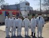이대엽 서울농협 본부장(왼쪽 네번째)과 이정배 서울경기양돈농협 조합장(왼쪽 세번째) 등 관계자들이 경기 화성시 소재 양돈농가에서 방역활동을 벌이고 있다./서울농협 제공 |