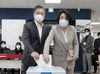 문재인 대통령이 10일 오전 김정숙 여사와 서울 종로구 삼청동 주민센터를 찾아 제21대 국회의원 선거 사전투표를 하고 있다. 청와대사진기자단 |