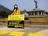 세월호 참사 희생자 고 임경빈 군의 어머니 전인숙씨가 4월 6일 청와대 앞 분수대에서 세월호 진상규명을 요구하며 1인 시위를 하고 있다. / 김원진 기자 |