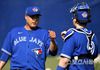 토론토 블루제이스 류현진이 17일(한국시간) 플로리다 더니든 바비 매틱 트레이닝 센터에서 열린 스프링캠프에 참가해 불펜 피칭 후 포수 대니 존슨과 하이파이브를 하고 있다. 더니든 | 최승섭기자 thunder@sportsseoul.com |