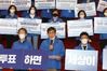 (서울=연합뉴스) 서혜림 기자 = 더불어민주당이 참여하는 비례정당인 더불어시민당은 12일 국회 로텐더홀에서 기자회견을 열고 자당의 비례대표 후보 30명이 내건 '1호 법안'을 발표했다.