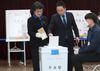 열린민주당 정봉주 최고위원(오른쪽), 김진애 후보가 10일 오전 서울 마포구 서강동주민센터에서 제21대 국회의원 선거 사전투표를 하고 있다. |연합뉴스 |