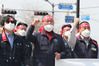 지난 1일 경기 평택 미군기지 캠프 험프리스 정문 앞에서 전국주한미군한국인노조 조합원들이 무급휴직 상태 정상화를 촉구하는 구호를 외치고 있다.[연합] |