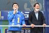 김남국(왼쪽) 더불어민주당 후보와 지원 유세에 나선 임종석 전 청와대 비서실장 출처:김남국 페이스북 |