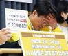 416연대 ‘차명진 OUT’ - 13일 서울 종로 대학로에 있는 416연대 대회의실에서 열린 ‘4·15 총선 정당-후보자 약속 운동 결과 발표 및 후보 19인 낙선 호소 기자회견’에서 한 세월호 유가족이 ‘차명진 OUT’ 팻말을 든 채 손으로 이마를 짚고 있다.뉴스1 |