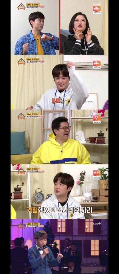 이날 박현빈은 TV조선 ‘내일은 미스터트롯’ 심사위원으로 섭외가 왔을 때 처음엔 거절했다고 고백했다. 자신이 심사할 자격이 있을까라는 생각이 컸기 때문이었다. 박현빈은 “(제작진이) 앉아라도 있었으면 좋겠다(고 했다)”며 출연 이유를 설명했다.