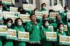 민생당 손학규 상임 선거대책위원장과 김정화 대표, 당원들이 지난 8일 국회 본청 앞 계단에서 재난극복수당 200만원 수용 촉구 결의대회를 하고 있다. /김영민 기자 |