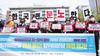 13일 오후 서울 종로구 주한미국대사관 앞에서 열린 기자회견에서 평통사와 시민사회단체 회원들이 방위비분담금 협상 중단과 방위비분담 협정 폐기를 촉구하고 있다. [연합] |