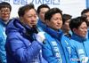 4·15 총선을 이틀 앞둔 이달 13일 오전 강원 강릉시 강릉역 앞에서 열린 더불어민주당 이광재·김경수·이동기·김동완 원팀 기자회견에서 이광재 후보가 영동권 후보 지지를 호소하고 있다. / 사진제공=뉴스1 |