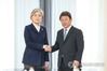강경화(왼쪽) 한국 외교부 장관이 2020년 2월 15일(현지시간) 독일 뮌헨에서 한일 외교장관 회담을 앞두고 모테기 도시미쓰 일본 외무상의 손을 잡고 기념 촬영에 응하고 있다 [외교부 제공. 재판매 및 DB 금지] |