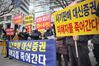 대신증권에서 판매한 라임자산운용 펀드 투자 피해자들이 지난달 14일 서울 영등포구 금융감독원 앞에서 집회를 열고 검찰 수사 등을 촉구하며 구호를 외치고 있는 모습.연합뉴스 |