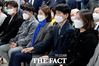 이들은 초조함과 긴장감 속에 출구조사 발표를 지켜봤다. 지상파 방송사 3사는 고 후보와 오세훈 미래통합당 후보가 각각 49.3%, 48.8%의 득표율을 얻을 것으로 예측했다. 잔뜩 긴장한 듯 두 손을 모으고 이를 지켜본 고 후보는 박수를 치면서도 차분함을 유지했다. 승리를 장답할 수 없는 '경합'이었기 때문이다.