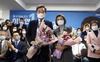 15일 서울 종로구 국회의원 당선이 확실시되는 더불어민주당 이낙연 후보 부부가 서울 종로의 선거사무소에서 지지자들한테 꽃다발을 받은 뒤 기념촬영을 하고 있다. 뉴시스 |