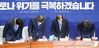 더불어민주당 이해찬 대표, 이낙연 공동상임선대위원장, 이인영 원내대표 등이 16일 오전 서울 여의도 국회에서 열린 대한민국미래준비선거대책위원회의에서 총선결과에 국민께 감사인사를 하고 있다. /사진=뉴스1 |