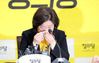정의당 심상정 상임선대위원장이 16일 오전 서울 여의도 국회에서 열린 중앙선대위 해단식에서 인사말을 하던 중 눈물을 흘리고 있다.(사진=연합뉴스) |