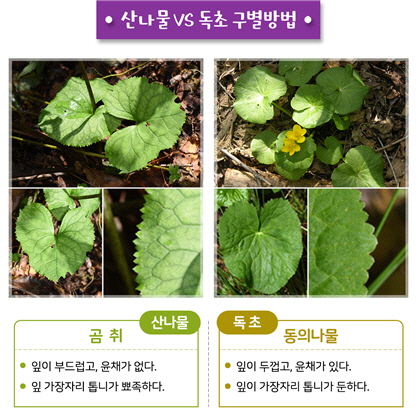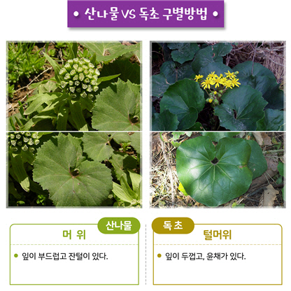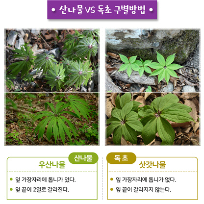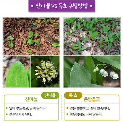 김종한 행정안전부 예방안전정책관은 “날씨가 따뜻해 지면서 나물을 채취하러 가시는 분들이 많은데, 전문가가 아니면 독초와 구분하기 어려우니 모르는 산나물이나 약초는 채취도 섭취도 하지 말아야한다”고 당부했다.