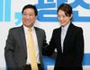 4·15 총선 공식 선거운동 개시일인 지난 2일 서울 광진구 고민정 더불어민주당 광진을 후보 선거사무소에서 열린 민주연구원과 고 후보 간 공약이행 정책협약식에서 양정철(사진 왼쪽) 민주연구원장과 고 후보가 협약서를 교환한 뒤 밝게 웃고 있다. 사진=연합뉴스. |