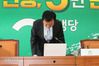 손학규 민생당 상임선대위원장이 16일 국회에서 기자회견을 열고 4·15 총선 참패에 대한 사죄의 의미로 고개를 숙이고 있다. 이준헌 기자 |