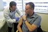 미국 시애틀 카이저 퍼머넨테 워싱턴 보건연구소에서 지난 16일(현지 시각) 약사가 신종 코로나바이러스 감염증(코로나19) 백신 후보 약품을 임상 1상 시험 참가자에게 투여하고 있다. /연합뉴스 |
