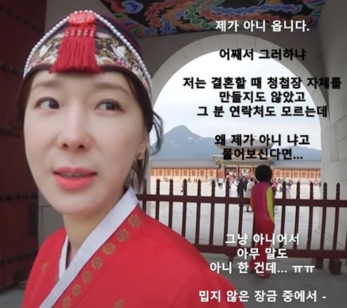 함께 공개된 사진 속에는 "제가 아니옵니다. 어째서 그러하냐. 저는 결혼할 때 청첩장 자체를 만들지도 않았고 그 분 연락처도 모르는데 왜 제가 아니냐고 물어보신다면. 그냥 아니어서 아무 말도 아니 한 건데"라며 강은비의 '181818원 축의금' 논란을 직접 해명했다.