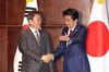 문재인 대통령과 아베 일본 총리가 지난해 12월 24일(현지시간) 중국 쓰촨(四川)성 청두(成都) 세기성 샹그릴라호텔에서 정상회담에 앞서 악수하고 있다. |