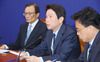 그러나 이 원내대표는 개헌과 관련, 서두르지 않겠다는 입장을 보였다. 그는 “지금은 개헌을 먼저 이야기할 게 아니고 코로나19 경제 위기 극복에 총력을 집중해야 한다”며 “개헌과 관련해 아직 검토·논의해보지 못했다”고 말했다.