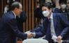[서울=뉴스핌] 최상수 기자 = 이인영 더불어민주당 원내대표(오른쪽), 최운열 의원(왼쪽)이 20일 오후 서울 여의도 국회에서 열린 의원총회에서 악수를 나누고 있다. 2020.04.20 kilroy023@newspim.com 저작권자(c) 글로벌리더의 지름길 종합뉴스통신사 뉴스핌(Newspim), 무단 전재-재배포 금지