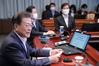 문 대통령은 이날 오후 청와대에서 수석·보좌관회의를 주재하고 모두발언에서 "첫째도 둘째도 국난 극복"이라며 이같이 말했다. 그러면서 정치권을 향해 "국민들의 준엄한 명령을 받들어 정부와 함께 여당도 무한 책임을 진다는 자세로 모든 역량을 국난 극복에 집중해 주기 바란다"며 "얼마 안 남은 20대 국회의 마지막 소임도, 21대 국회를 준비하는 마음가짐도 국난 극복에 힘을 모으는 것이어야 한다"고 당부했다.