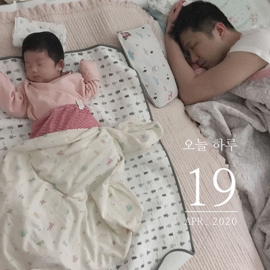 공개된 사진 속에는 똑같은 포즈로 잠을 자고 있는 한지우의 딸과 남편이 담겨 있다. 한지우 남편의 훈훈한 비주얼이 눈길을 사로잡는다. 또한 딸을 바라보는 눈에서 꿀이 뚝뚝 떨어지는 모습이 아름답다.