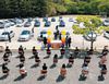 초등 입학식도 '드라이브 인' - 20일 오전 전남 광양시 금호동 광양제철초 운동장에서 43명의 신입생과 학부모가 승용차 등에 탄 채 '드라이브 인(Drive in)' 입학식에 참석 중이다. 이날 함께 참석한 교직원 20여명과 외부 초청인사들은 단상 뒤로 의자 간격을 2m씩 벌려 앉았다. 학교 측은 "온라인 입학식은 얼굴도 못 보는 게 안타까워 대신 학부모 동의를 얻어 이런 입학식을 열게 됐다"고 했다. /포스코 교육재단 |