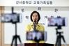 유은혜 부총리 겸 교육부 장관이 지난 16일 오후 인천시 강화군 강서중학교에서 열린 '온라인 입학·개학식'에서 인사말을 하고 있다. 연합뉴스 |