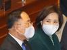 홍남기 경제부총리(왼쪽)와 유은혜 사회부총리가 20일 국회 본회의장에서 논의하고 있다. 연합뉴스 |