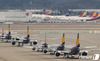 9일 오후 인천국제공항 주기장에 늘어선 아시아나항공 여객기들. 2020.4.9/뉴스1 © News1 성동훈 기자 |