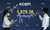 국제유가 첫 마이너스 돌파와 김정은 중태설에 코스피가 1.00% 떨어진 1,879.38로 장을 마감한 21일 오후 서울 여의도 국민은행 딜링룸에서 직원들이 증시현황판을 바라보고 있다. 남정탁 기자 |