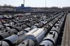원유 탱크를 실어 나르는 열차들이 21일(현지시간) 시카고에 멈춰서 있다. [AP] |