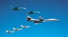 외형이 백조를 연상시켜 ‘죽음의 백조’라는 별명을 가진 미국의 전략폭격기 B-1B가 22일 일본 미사와 주일 미군기지 인근으로 날아와 일본 항공자위대 소속 F-2 전투기 2대와 연합훈련을 했다. B-1B는 B-52, B-2와 함께 미국의 3대 전략폭격기로 적지를 융단폭격할 수 있는 가공할 파괴력을 갖춘 전략무기다. 미국 태평양공군사령부 홈페이지 제공 |