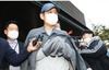 남부경찰서 입구에 선 그는 회색빛 모자와 후드티, 바지 등을 입고 하얀색 마스크로 입을 가린 모습이었다.