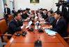 미래통합당 소속 김재원 예결위원장(왼쪽)이 24일 국회에서 구윤철 기획재정부 2차관(오른쪽)과 2차 추경안 관련 논의를 하고 있다. 연합뉴스 |