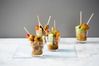 4. 컵에 피넛 월남쌈 소스를 담고 채소와 닭고기를 꽂은 다음 파슬리를 뿌린다. |