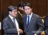 더불어민주당 원내대표에 도전중이 노웅래, 이인영, 김태년 후보가 7일 국회에서 열린 'GTX-B노선 추진 토론회'에 참석, 인사를 나누고 있다./윤동주 기자 doso7@ |