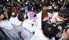 사자(死者) 명예훼손 혐의로 기소된 전두환 씨가 27일 피고인 신분으로 열린 광주 동구 광주지법에서 열린 재판에 출석한 가운데 5월 어머니회를 비롯한 5·18 단체와 시민들이 전 씨의 사과와 처벌을 요구하며 법정으로 진입을 시도하고 있다.